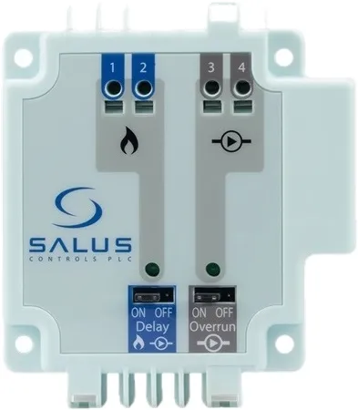 выключает насос и котёл, когда все помещения не требуют обогрева (все термоэлектрические приводы закрыты) и включает, когда хотя бы одно из помещений требует отопления (открыт хотя бы один термоэлектрический привод)