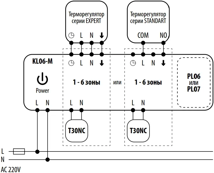 возможность работы с KL06-M 220V или KL06 24V