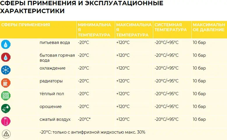 Назначениевысокотемпературные радиаторы, горячее водоснабжение, низкотемпературные радиаторы, отопление, холодное водоснабжение