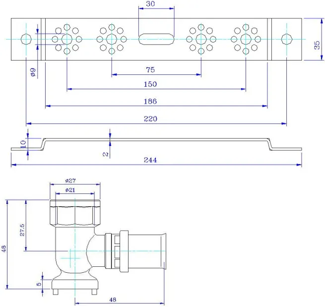 Характеристики товара Монтажная планка с водорозетками пресс 16мм x ½"в Valtec VTm.224.N.001604