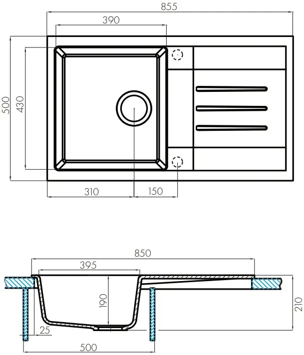 Отверстие под смесительбез отверстий, на 1 отверстие