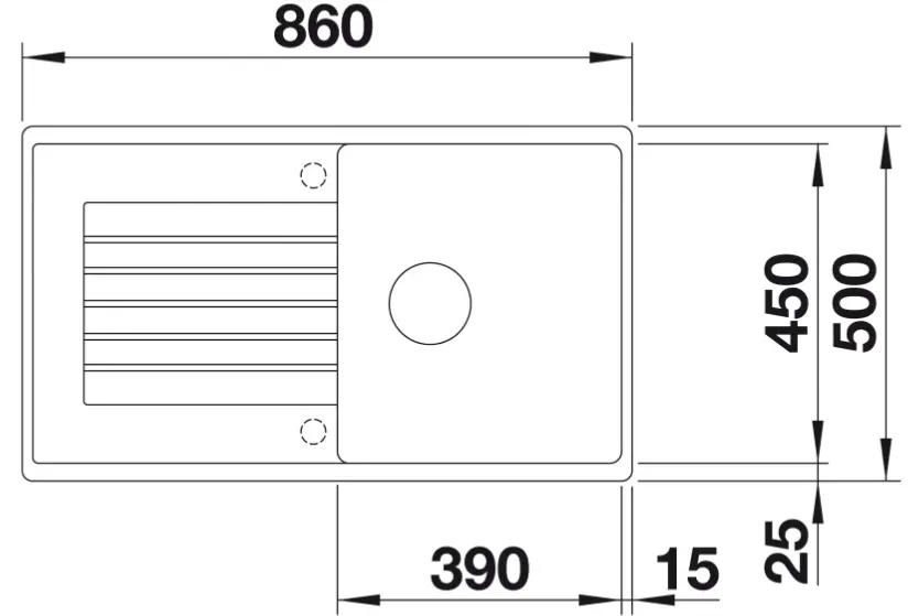 Намеченные отверстия под смеситель2 шт