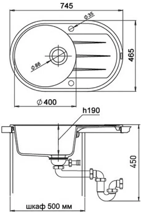 Характеристики товара Мойка кухонная Ewigstein Elegant E-R50F черный
