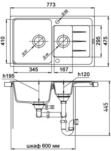 Характеристики товара Мойка кухонная Ewigstein Elegant E-R60KF антрацит