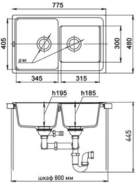 Характеристики товара Мойка кухонная Ewigstein Elegant E-R80D черный