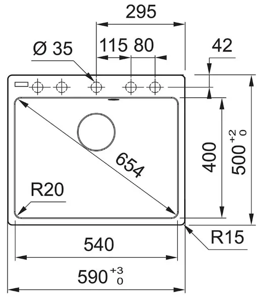 Намеченные отверстия под смеситель5 шт