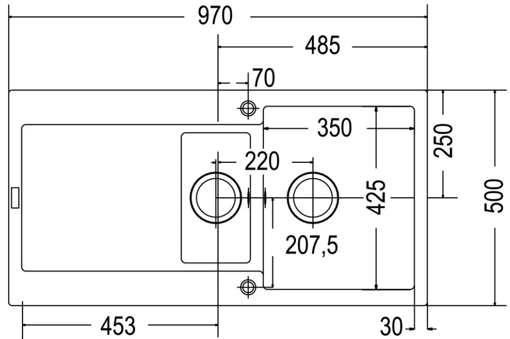 Намеченные отверстия под смеситель4 шт
