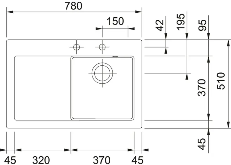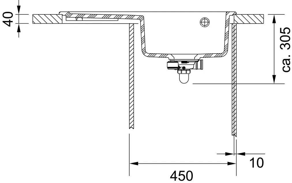 Намеченные отверстия под смеситель2 шт