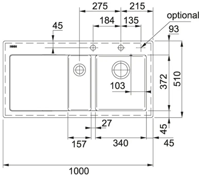 Отверстие под смесительбез отверстий, на 1 отверстие