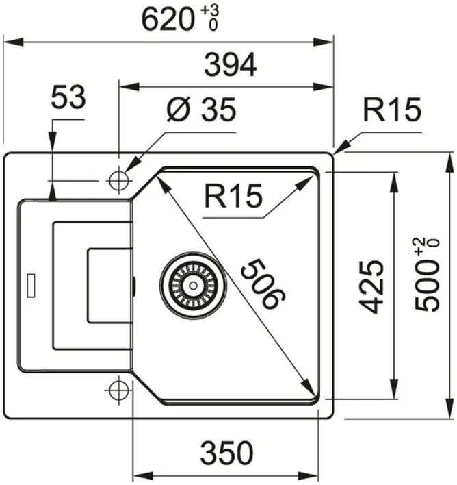 Диаметр отверстия в мойке: