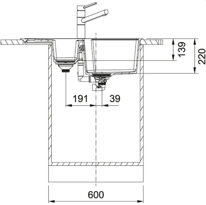 Диаметр отверстия в мойке: