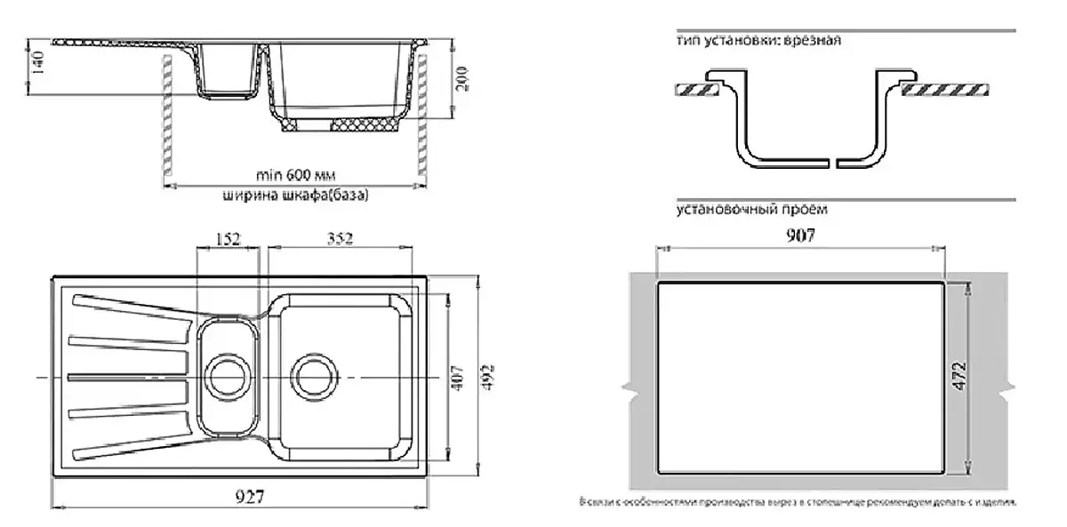Характеристики товара Мойка кухонная GranFest Standart S-940KL топаз