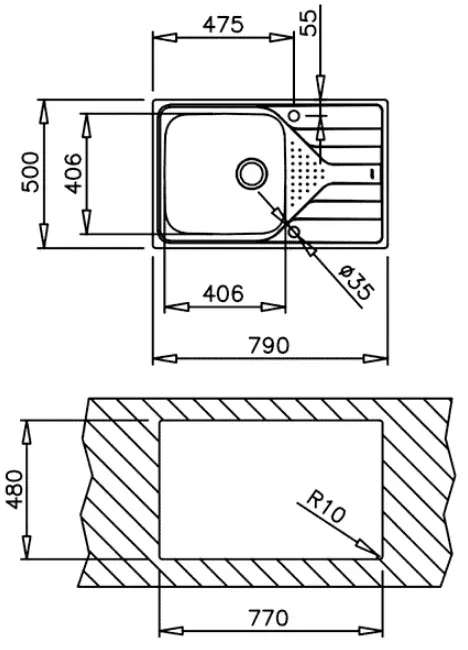 Толщина мойки0.7 мм