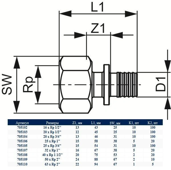 Характеристики товара Муфта аксиальная переходная 25мм x ¾"в TECEflex 705105