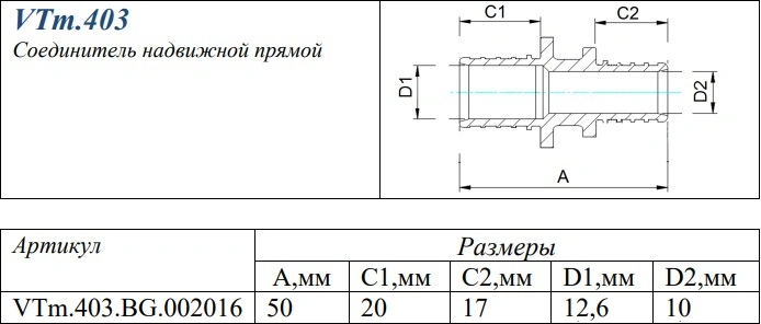 Характеристики товара Муфта аксиальная редукционная 20мм x 16мм Valtec VTm.403.BG.002016