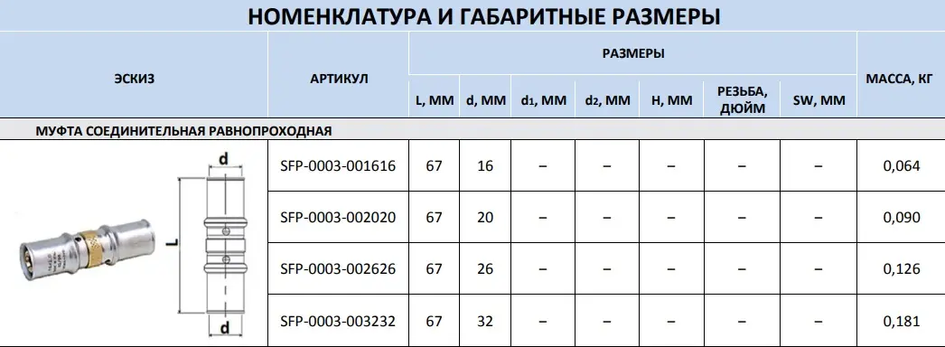 Характеристики товара Муфта пресс соединительная 16мм x 16мм APE AP103 16x16