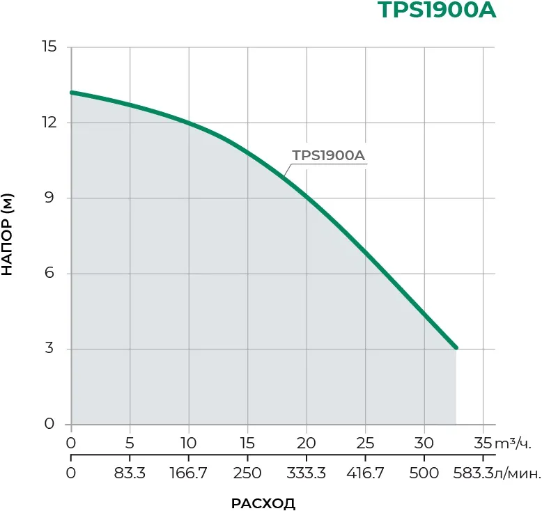 Характеристики товара Насос дренажный Q=36м³/ч H=13м Pumpman TPS1900A