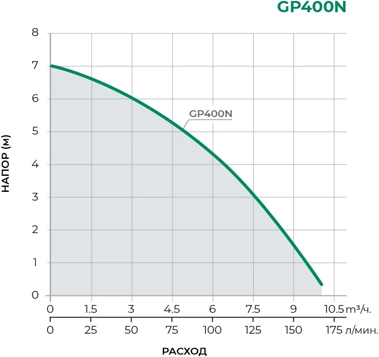 Характеристики товара Насос дренажный Q=9.9м³/ч H=7м Pumpman GP400N