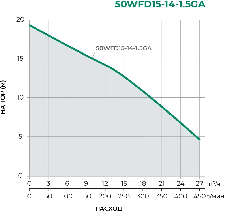 Характеристики товара Насос фекальный Q=27.0м³/ч H=19.5м Pumpman 50WFD15-14-1.5GA