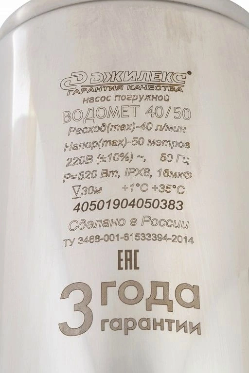 Характеристики товара Насос скважинный центробежный 4" Джилекс Водомет 40/50 БК ок 4051