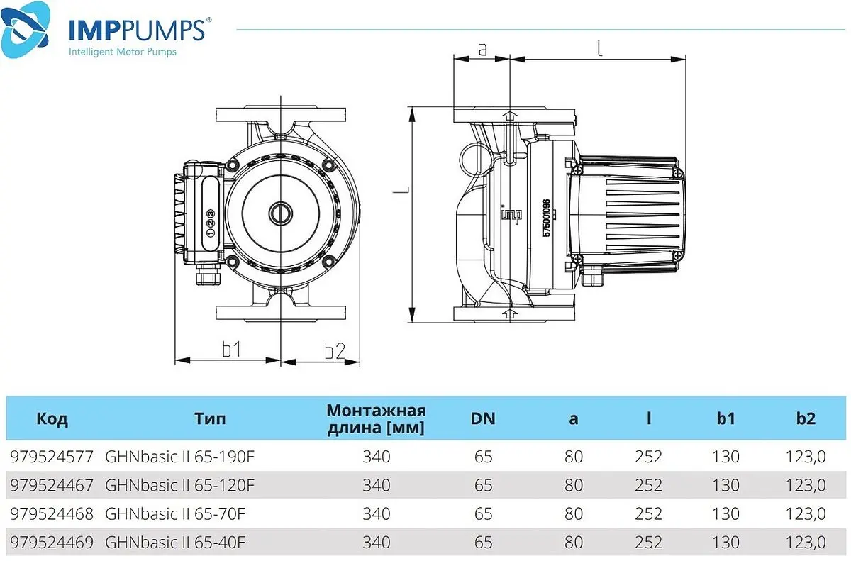 Характеристики товара Насос циркуляционный IMP Pumps GHNbasic II 65-190F 979524577