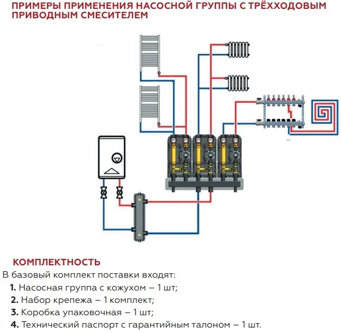 Характеристики товара Насосный модуль с 3-х ходовым смесительным клапаном 1½"н х 1"в Rommer RDG-1003-012501 без насоса