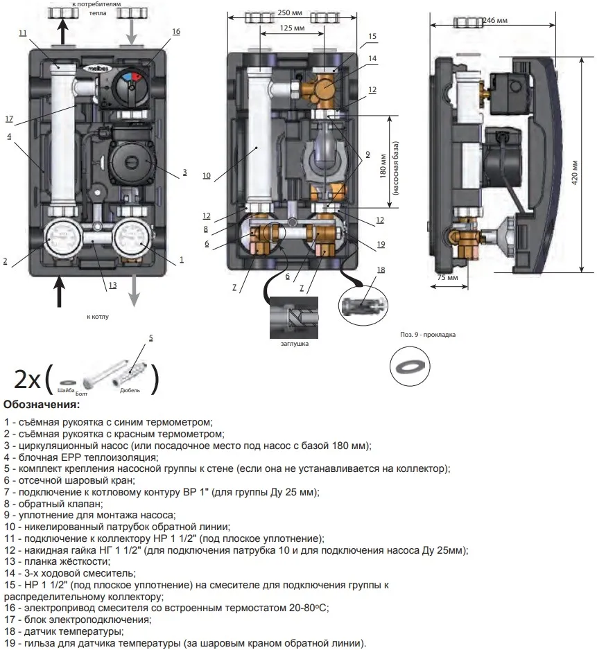 Характеристики товара Насосный модуль с 3-х ходовым смесительным клапаном 1"в х 1½"н Meibes MK M45841.54WIRU с насосом Wilo PARA SC 25-7.0