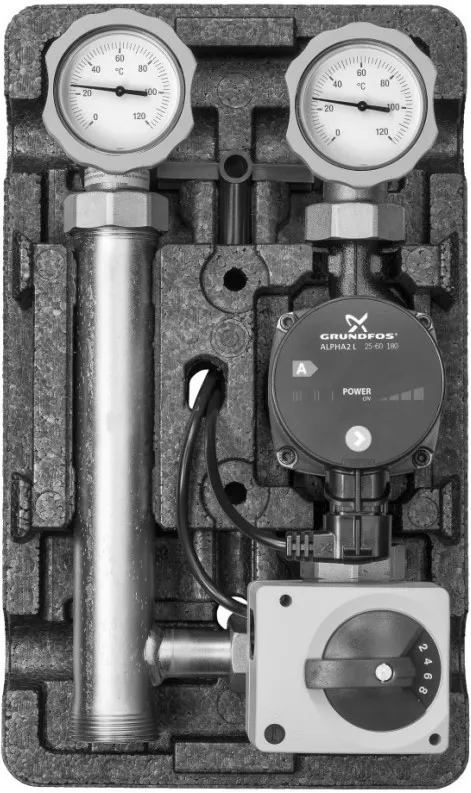 Насосный модуль с 3-х ходовым смесительным клапаном 1"в х 1½"н Meibes MK M66831.36 с насосом Grundfos UPM3 Hybrid 25-70