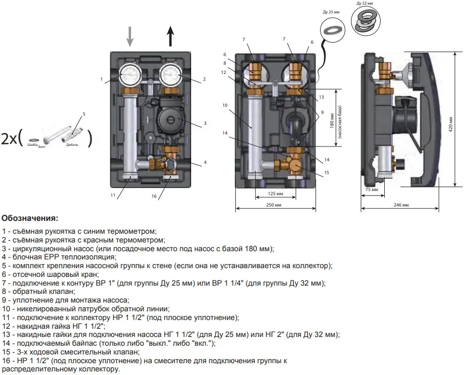Характеристики товара Насосный модуль с 3-х ходовым смесительным клапаном 1"в х 1½"н Meibes MK M66831.36 с насосом Grundfos UPM3 Hybrid 25-70