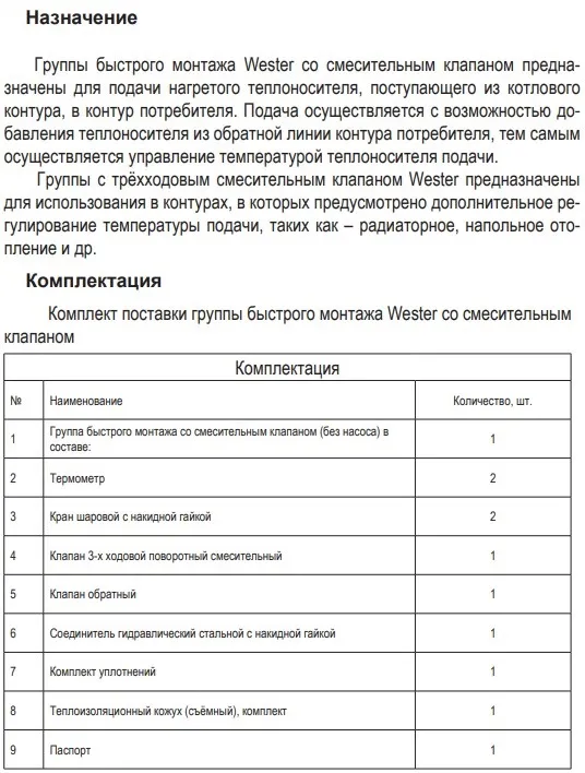 Характеристики товара Насосный модуль с 3-х ходовым смесительным клапаном и сервоприводом 1½"н х 1"н Wester DN25 0-05-0020 без насоса
