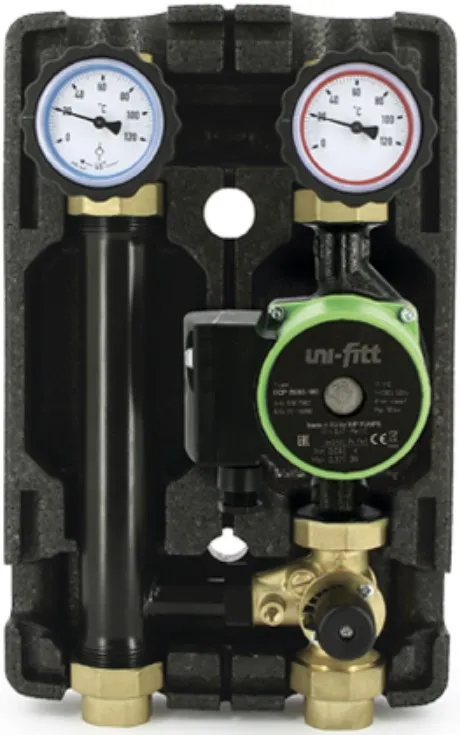 Насосный модуль с 3-х ходовым смесительным клапаном и сервоприводом 1"в х 1"в Uni-Fitt 492E2500 с насосом Uni-Fitt ECP 25/60 180