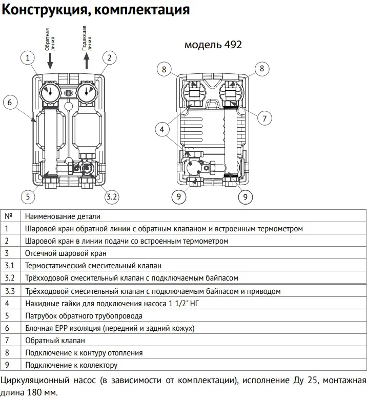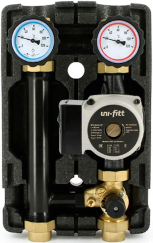 Характеристики товара Насосный модуль с 3-х ходовым смесительным клапаном и сервоприводом 1"в х 1"в Uni-Fitt 492S2503 с насосом Uni-Fitt GTO 25-6S