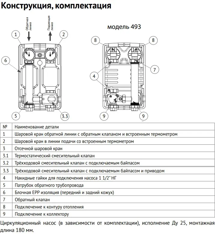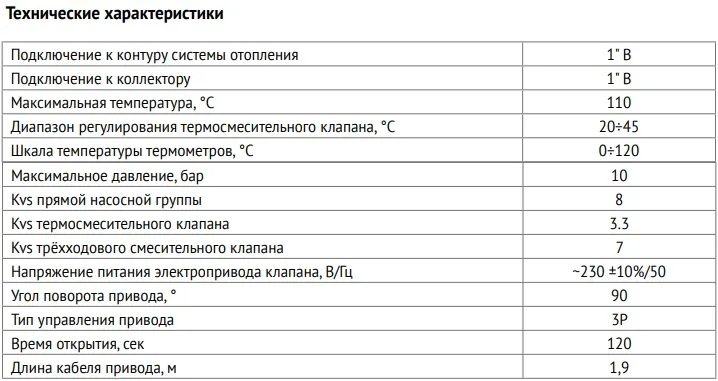 Характеристики товара Насосный модуль с 3-х ходовым смесительным клапаном и сервоприводом 1"в х 1"в Uni-Fitt 493P2500 с насосом Wilo Para 25/6