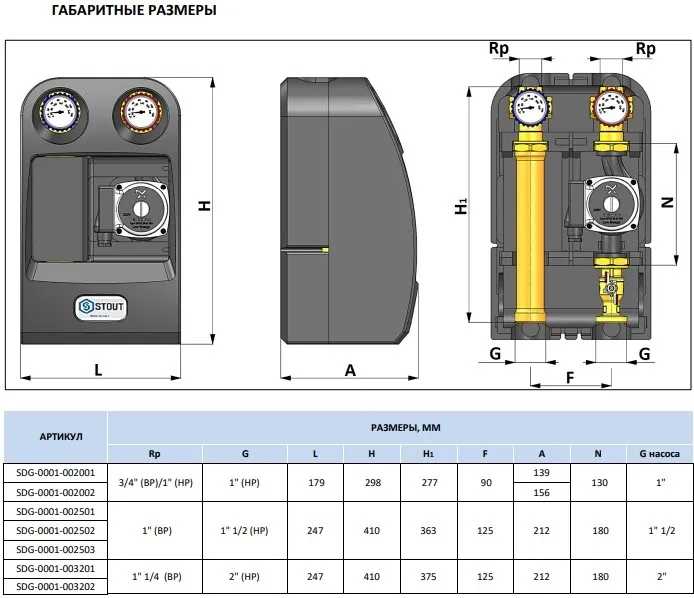 Характеристики товара Насосный модуль с прямым контуром 1½"н х 1"в Stout SDG-0001-002504 с насосом Stout SPC 25/60-180