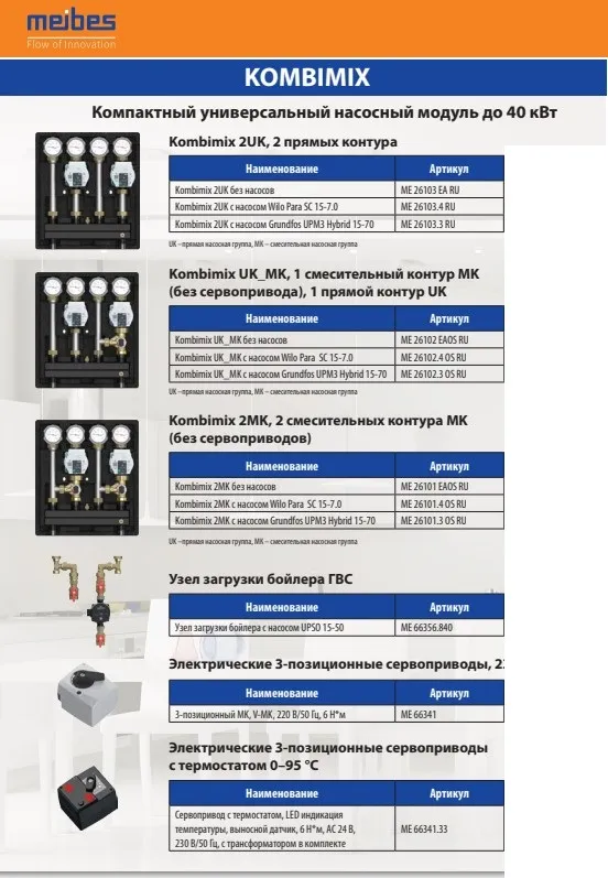 Характеристики товара Насосный модуль с прямым контуром 1"н х ¾"в Meibes Kombimix 2 UK M26103.3RU с насосом Grundfos UPM3 Hybrid 15-70