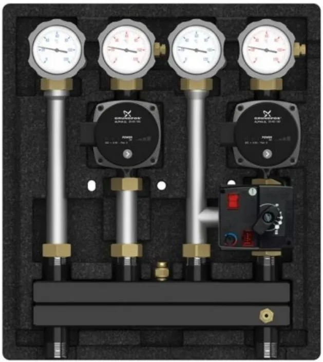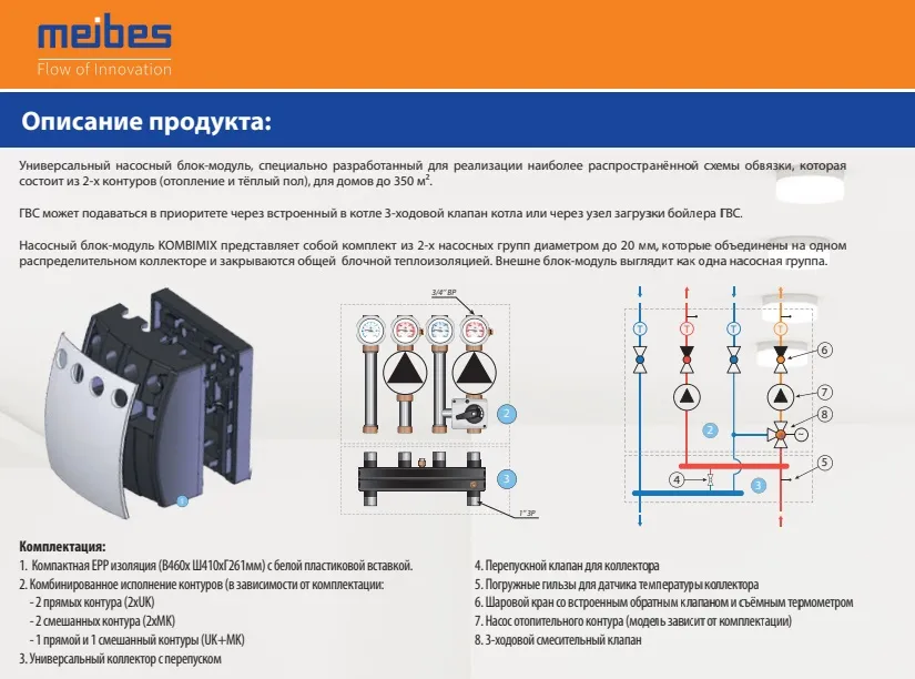 Характеристики товара Насосный модуль с прямым контуром и с 3-х ходовым смесительным клапаном 1"н х ¾"в Meibes Kombimix UK_MK M26102EAOSRU без насоса