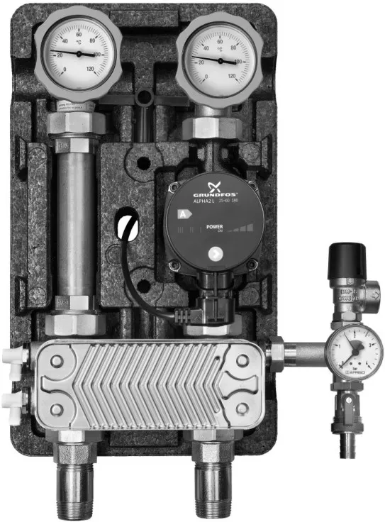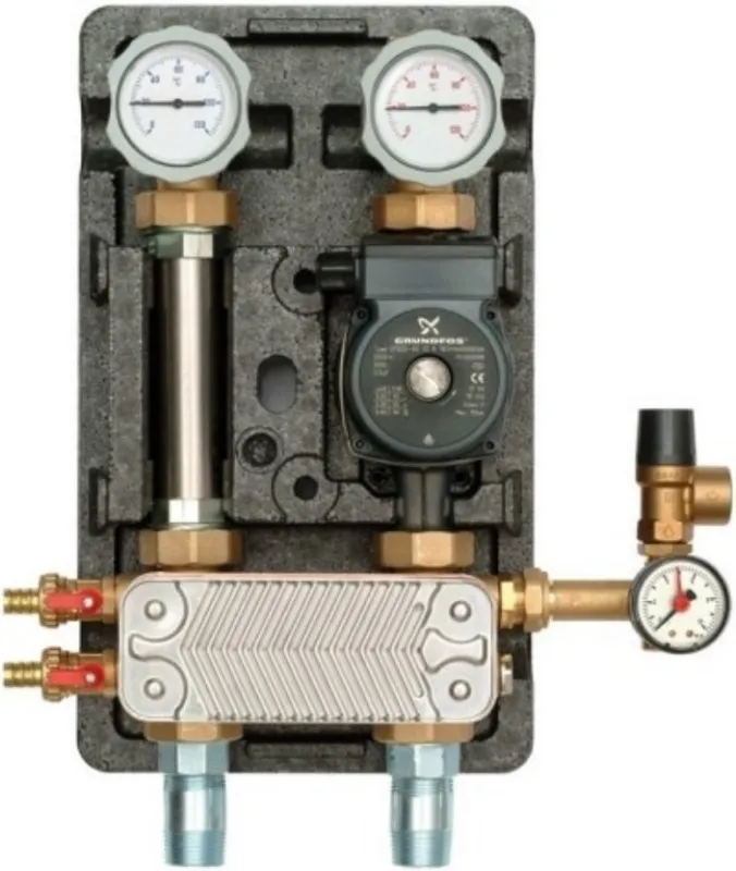 Насосный модуль с теплообменником 20 пластин 1"н х 1"в Meibes UK M45811.20 с насосом Grundfos UPS 25-60