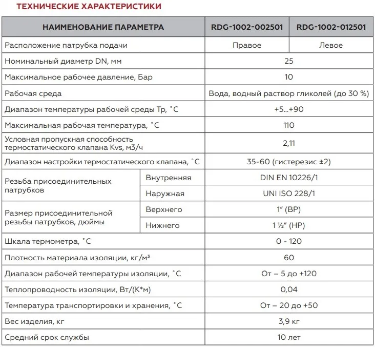 Характеристики товара Насосный модуль с термостатическим смесительным клапаном 1½"н х 1"в Rommer RDG-1002-002501 без насоса