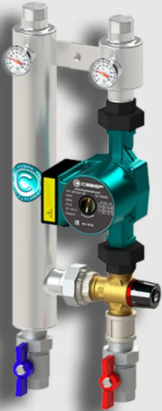 Характеристики товара Насосный модуль с термостатическим смесительным клапаном 1"в х 1"н Север R-TS 25/4(Aisi) 1955100 с насосом Север-UPS 25-4