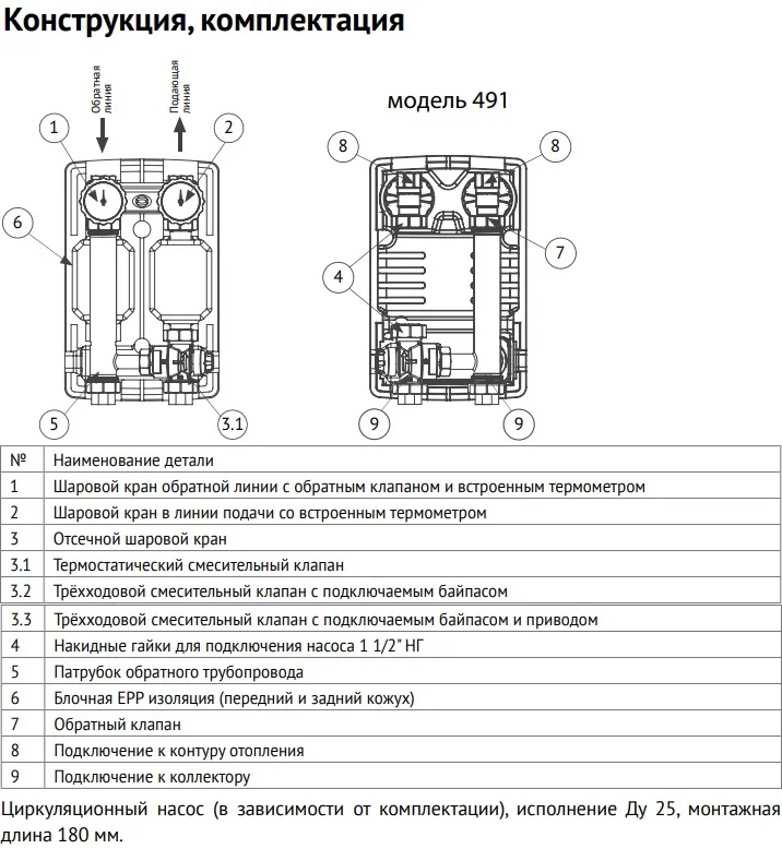 Характеристики товара Насосный модуль с термостатическим смесительным клапаном 1"в х 1"в Uni-Fitt 491E2500 с насосом Uni-Fitt ECP 25/60
