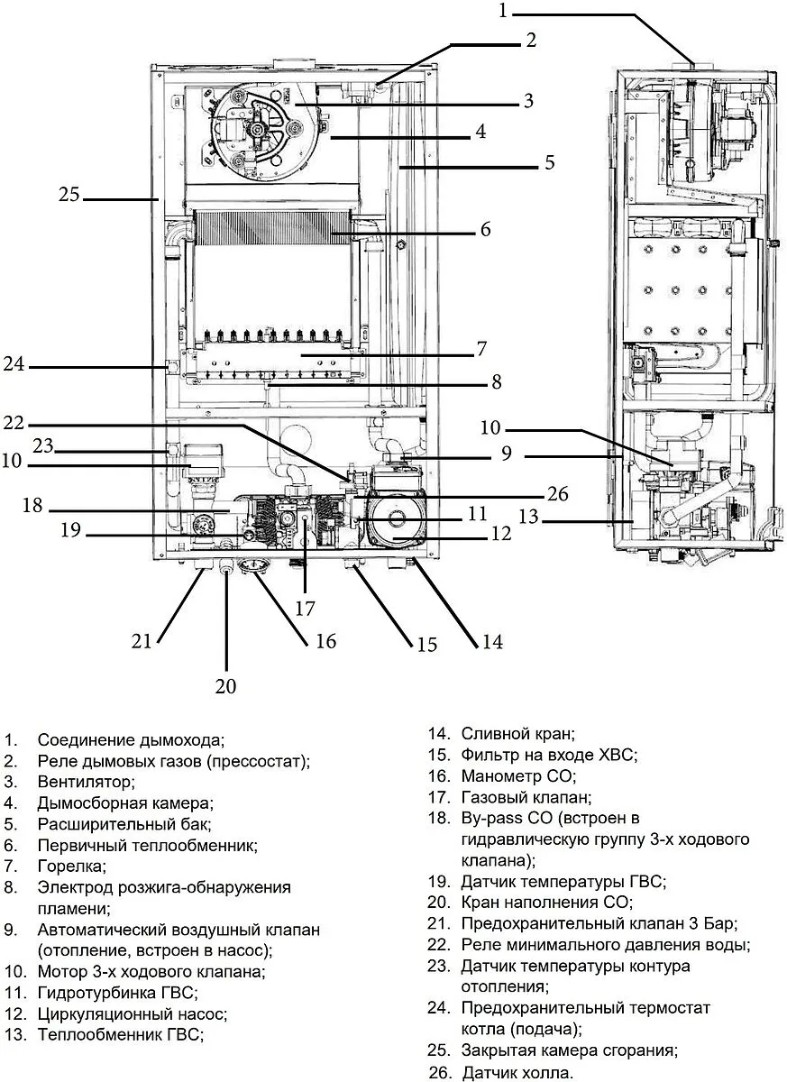 Характеристики товара Настенный газовый котел двухконтурный турбированный 24кВт Federica Bugatti VARME 24 703111101