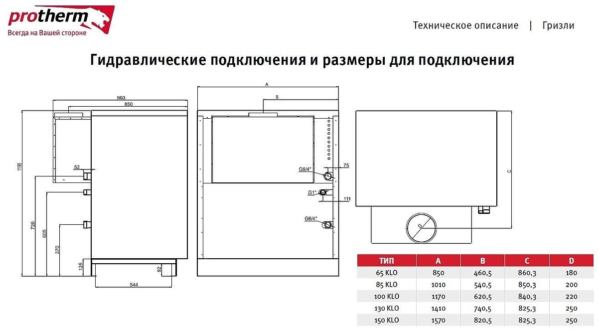 Характеристики товара Напольный газовый котел одноконтурный 65кВт Protherm Гризли 65 KLO 65KLOR12