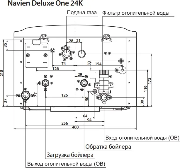 Характеристики товара Настенный газовый котел одноконтурный турбированный 24кВт Navien Deluxe One 24K PNGB3500024L003