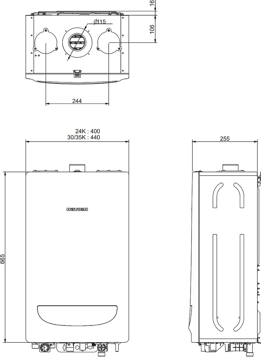 Характеристики товара Настенный газовый котел одноконтурный турбированный 40кВт Navien Deluxe One 40K PNGB3500040L003