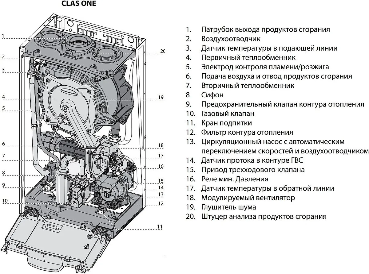 Характеристики товара Настенный конденсационный газовый котел двухконтурный турбированный 30кВт Ariston CLAS ONE 30 RDC 3301036