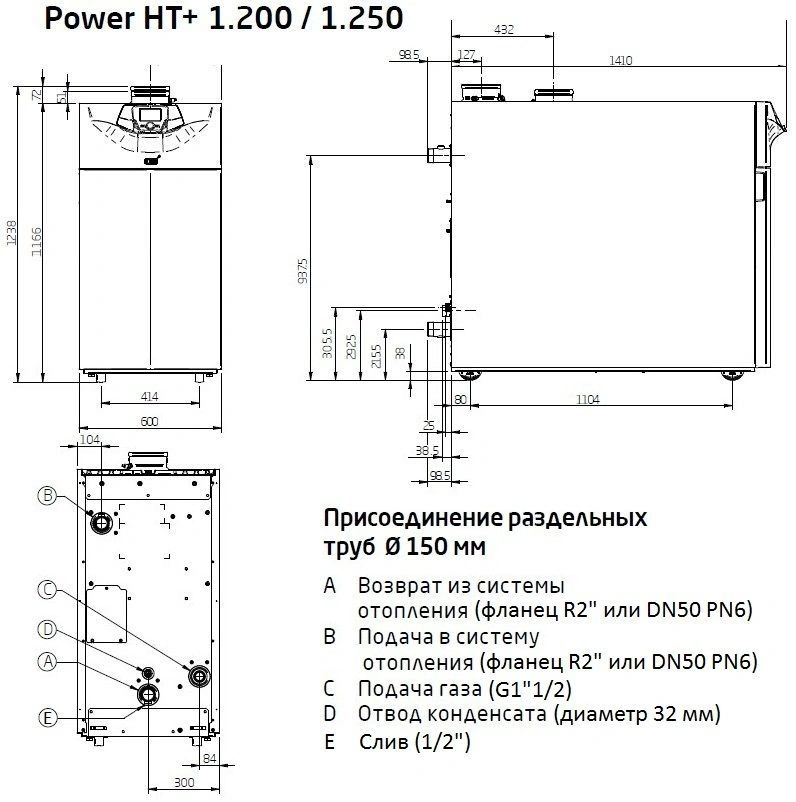 Характеристики товара Напольный конденсационный газовый котел одноконтурный 250кВт Baxi POWER HT+ 1.250 A7689653