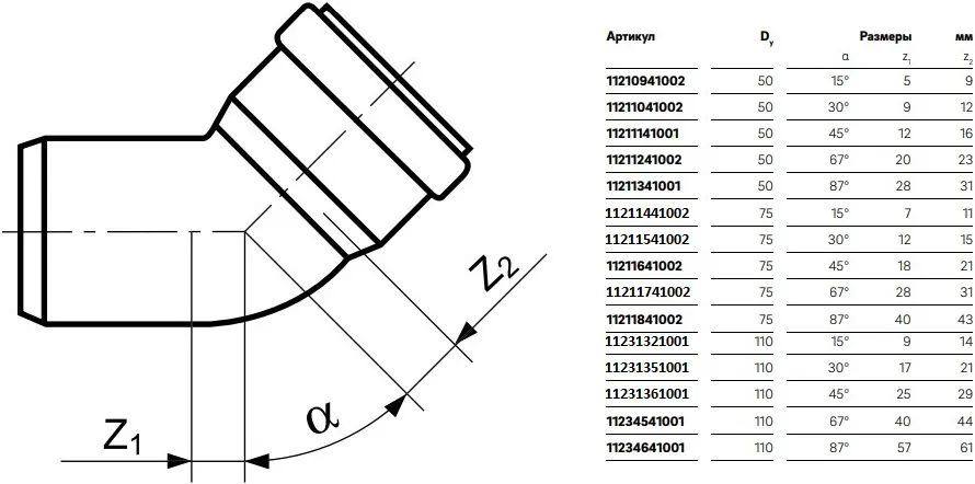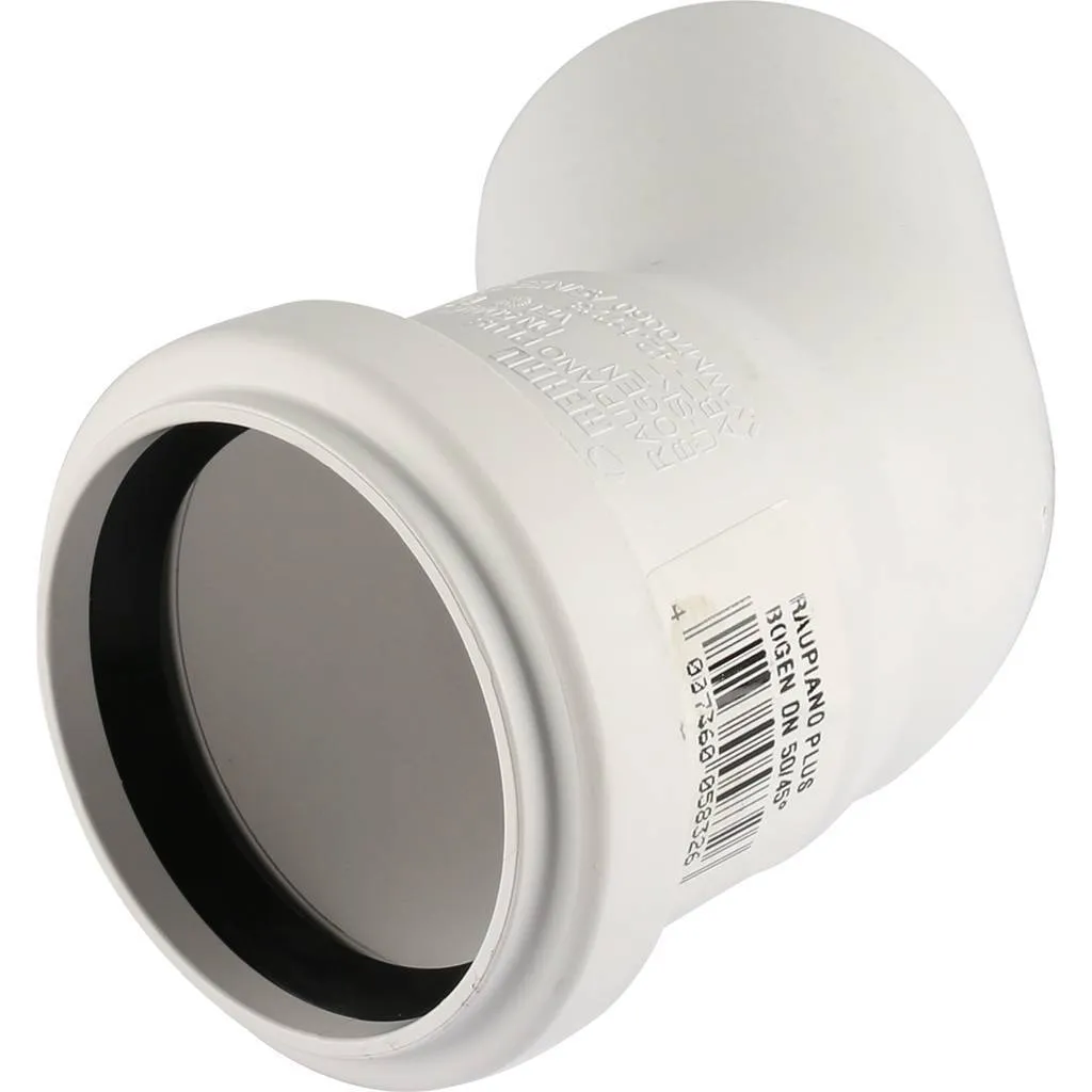 Характеристики товара Отвод внутренний бесшумный D=75мм Угол 45° Rehau Raupiano Plus 11211641002