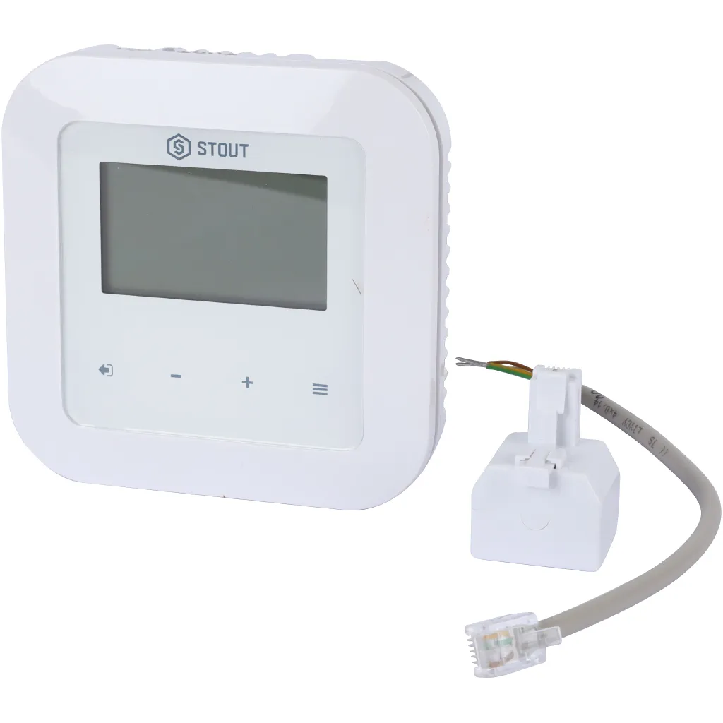 Проводной комнатный терморегулятор для контроллеров I-2, I-3 и I-3 Plus с коммуникацией RS Stout RI-1 белый STE-0101-001007