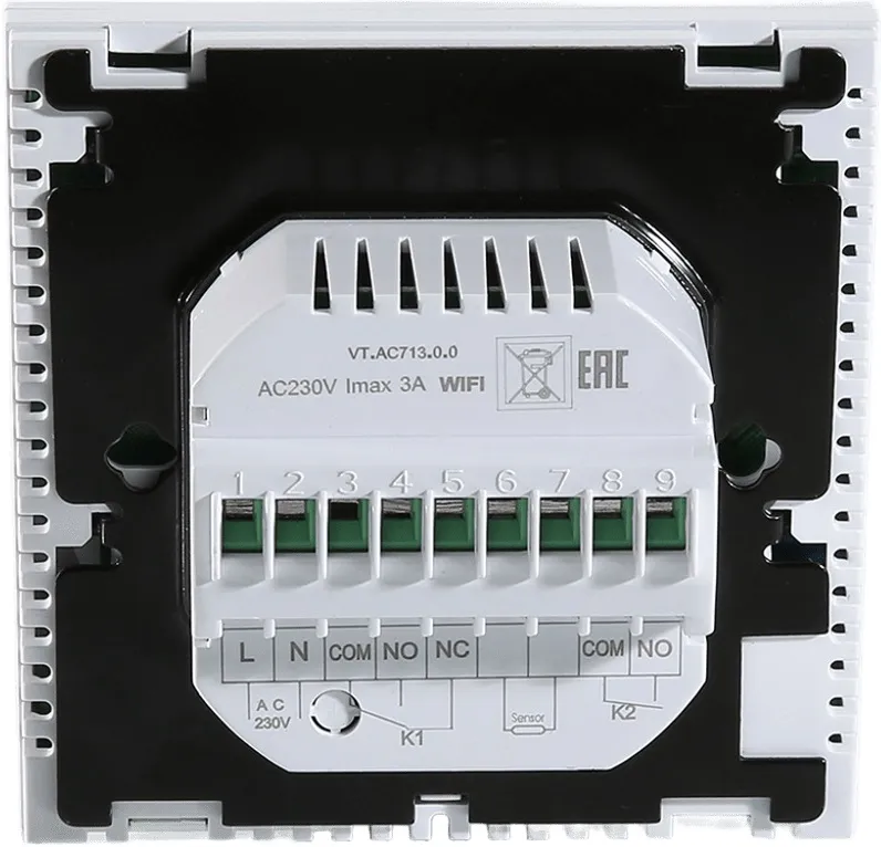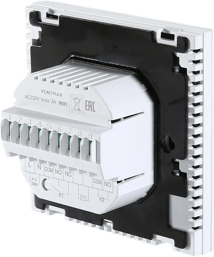 (VT.AC713.0) Хронотермостат электронный комнатный двухконтурный с Wi-Fi предназначен для автоматического управления работой двух независимых отопительных контуров на основании показаний встроенного и выносного датчиков температуры, путём подачи управляющих сигналов на элементы управления климатических систем (сервопривод, насос, вентилятор и т.п.).