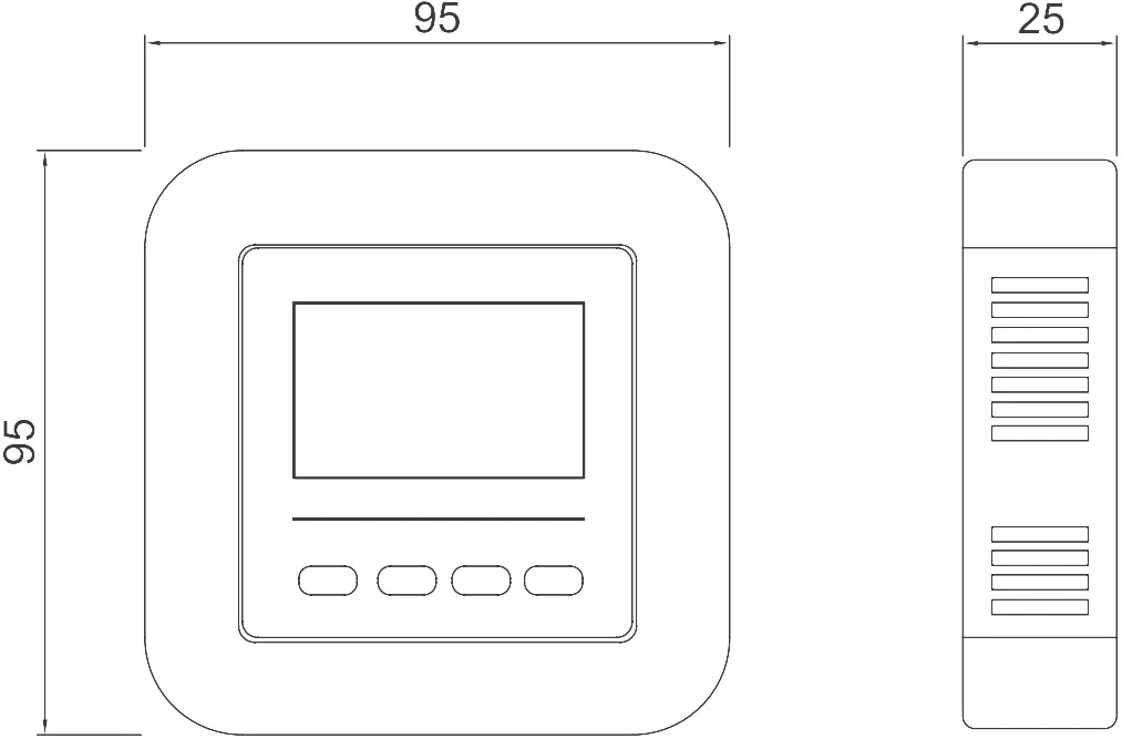 Питание термостата может осуществляться от внешнего блока напряжением 8–28 В (постоянный ток), при работе устройства в автономном режиме, либо от общей линии питания интерфейса RS-485 при построении комплексной системы автоматизации отопления с использованием зонального контроллера VT.К500 и термостатов по помещениям.
